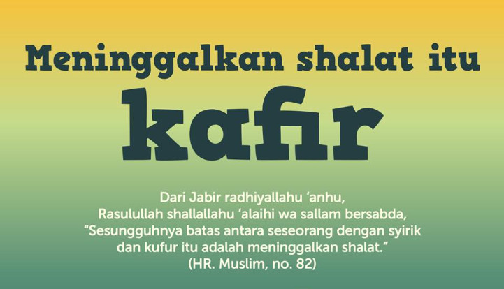 “Sesungguhnya ikatan (pembeda) antara kita dengan mereka adalah shalat. Barangsiapa meninggalkannya, maka telah kafirlah ia.”